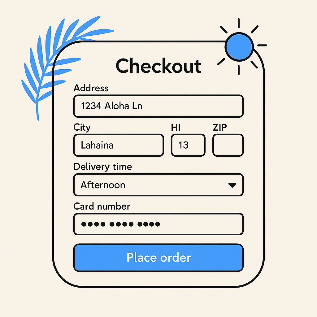 At checkout, enter the address of your accommodations on Maui (not applicable for near airport locker pickup), your preferred delivery times of day, and billing information.