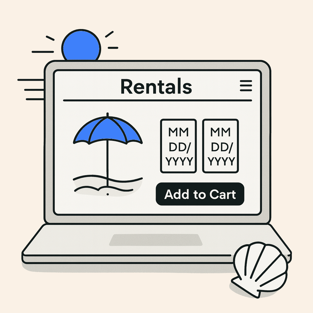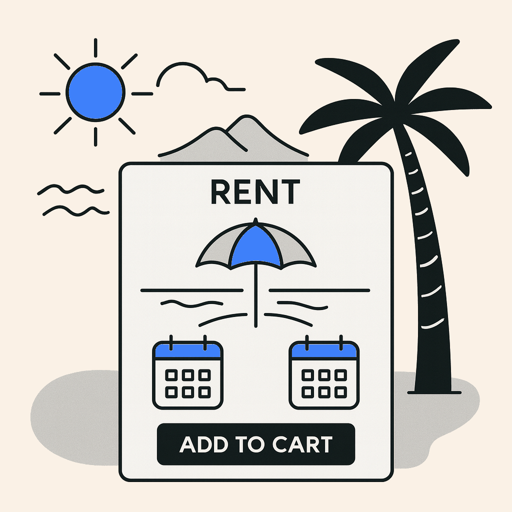 Once on the product page of the item you wish to rent, enter delivery & pickup dates & click, Add to Cart.